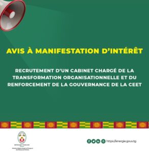 Au Togo, la Compagnie énergie électrique (CEET) s’active pour sa meilleure gouvernance. L’État veut moderniser l’entreprise publique. Le ministère délégué en charge de l’énergie et des ressources minières a lancé « un avis à manifestation d’intérêt » pour recruter un cabinet spécialisé.