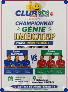 Cette synergie entre les partenaires techniques, financiers et les acteurs de terrain (enseignants, agents de santé et de l’action sociale) promet de faire de ce championnat un rendez-vous incontournable. Avec le soutien total des institutions de la République, la jeunesse togolaise dispose désormais d’une plateforme d’apprentissage dynamique pour devenir une génération responsable et épanouie.