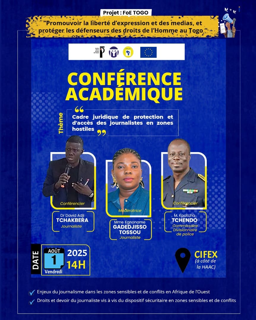 Quand exercer le journalisme devient un acte de courage, garantir la sécurité des professionnels de l’information dans des zones hostiles devient un impératif. L’Observatoire togolais des médias (OTM), en partenariat avec l’Institut Panos Afrique de l’Ouest et Famedev, organisent ce vendredi 1ᵉʳ août 2025 à 14h00 au centre Cifex de Lomé, une conférence publique.