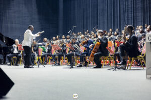 La soirée a fait vibrer le Palais des Congrès lors du concert de la Philharmonia de Lomé, fusion orchestrale entre Opus Académie et les chœurs Amazing Voice et Émeraude de Lomé. Devant une salle comble, en présence du ministre du Tourisme, de la Culture et des Arts, Isaac Tchiakpe, du ministre délégué auprès du ministre des Transports, chargé de l’Économie maritime, Edem Kokou Tengue, de l’ancienne Première ministre Victoire Tomégah-Dogbé, ainsi que d’un parterre de diplomates en poste au Togo, parmi lesquels Lionel Vignacq du Service de coopération et d’action culturelle de l’Ambassade de France, et de la représentante résidente de l’UNICEF au Togo, Docteure Erinna Corinne Marie Laure Ado Adotevi épouse Dia.