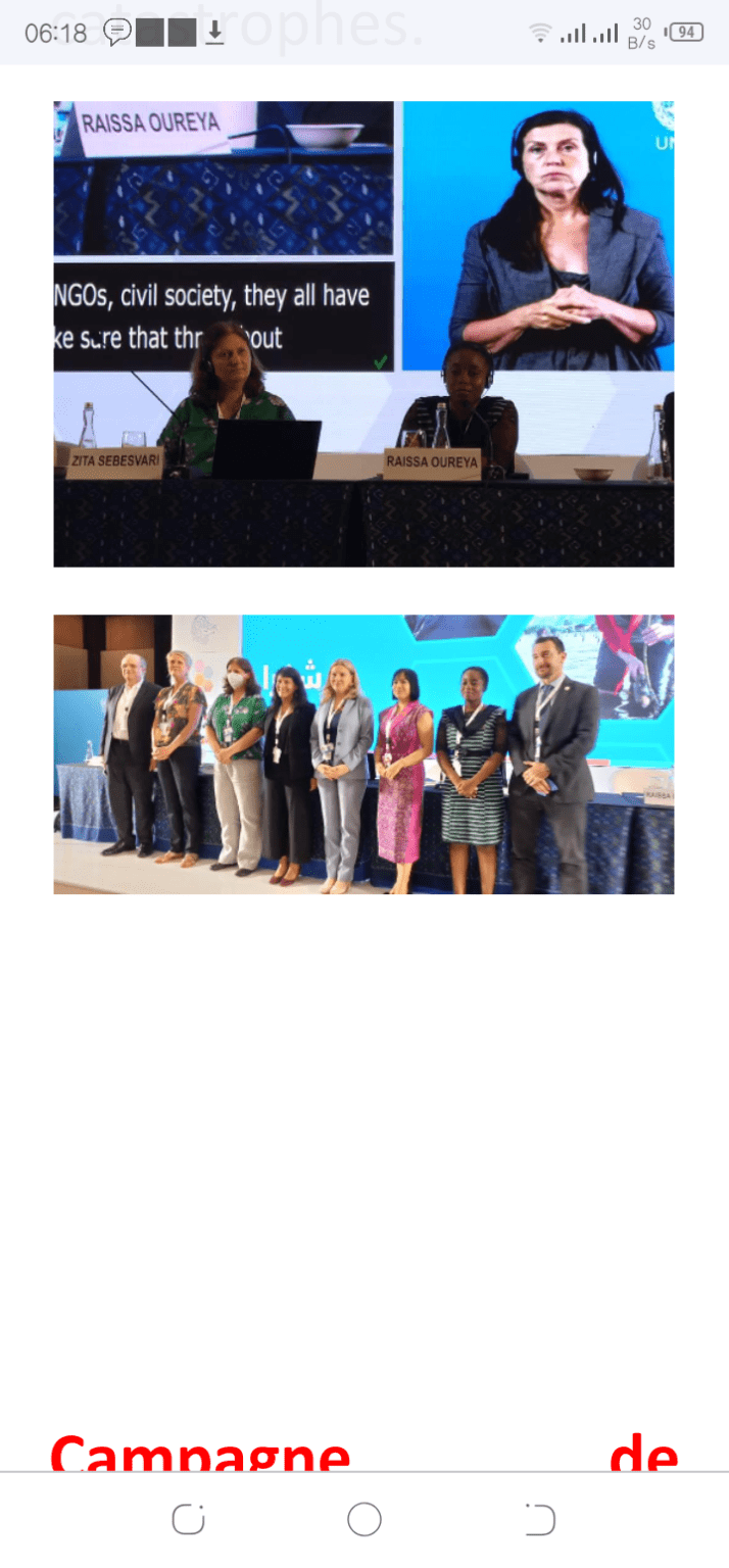 L’on espère donc qu’à la COP 27, il y aura encore plus d’avancées. C’est ce message que Raïssa Oureya a porté à la tribune de la Plateforme mondiale pour la réduction des risques de catastrophes.