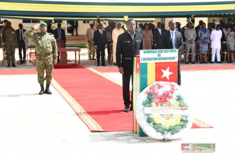Au nom du peuple togolais, le chef d’État-Major général des Forces armées togolaises, le général de Brigade Dimini Allaharé, a pris la parole. Il a exprimé « sa reconnaissance et son admiration à l’endroit des soldats blessés et de ceux ayant accompli des actes héroïques ». Un hommage direct à la hauteur des sacrifices consentis.