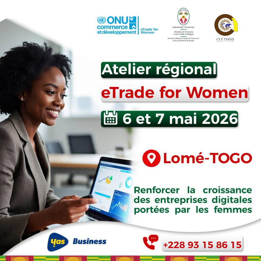 Lomé abritera les 6 et 7 mai 2026 une rencontre régionale consacrée aux femmes entrepreneures du numérique, à l’initiative de la Conférence des Nations unies sur le commerce et le développement, dans le cadre du programme eTrade for Women. L’événement réunira des actrices du commerce électronique de plusieurs pays autour des enjeux de croissance, d’innovation et d’inclusion économique.