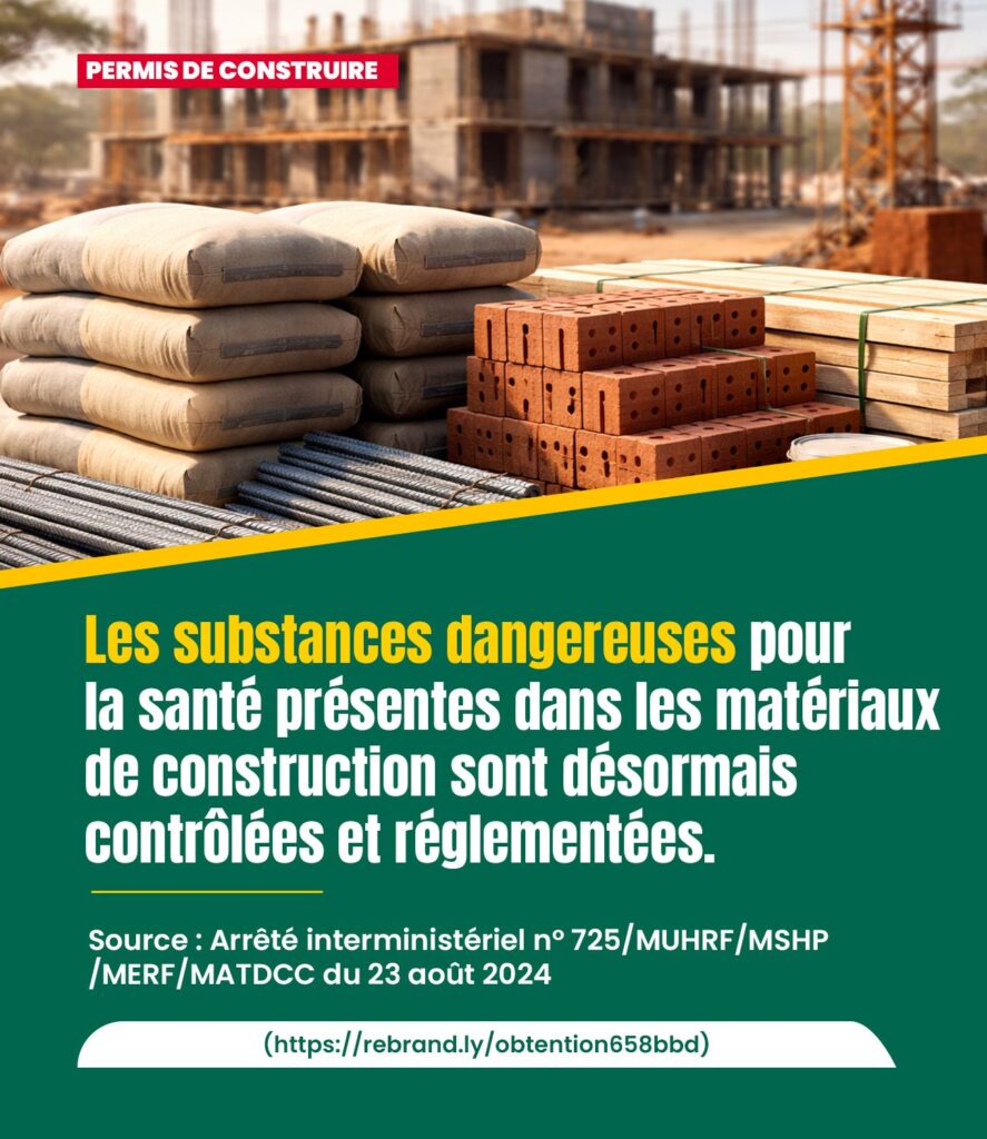 Le chantier de la santé publique passe aussi par la construction immobilière. Le gouvernement togolais vient d’en donner une illustration concrète. « Un arrêté interministériel du 23 août 2024 fixe les règles pour identifier et gérer ces substances », indique le texte officiel. Cette décision vise à contrôler la composition des matériaux de construction.