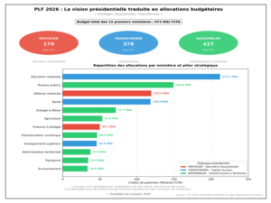 La vision stratégique, articulée autour de la protection des citoyens et de la souveraineté nationale, de la consolidation républicaine et de la cohésion sociale, ainsi que du développement économique accéléré, trouve sa traduction financière dans le Projet de Loi de Finances (PLF) 2026. Ce budget, adopté par les deux chambres du Parlement à la fin décembre 2025 dans un contexte de transformation institutionnelle sans précédent depuis plus de trente ans, constitue le premier exercice budgétaire complet de la nouvelle ère parlementaire togolaise.