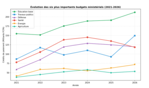 | Ministère | 2021 | 2022 | 2023 | 2024 | 2025 | 2026 | Évol. |