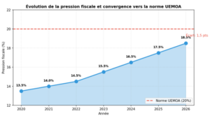 Graphique 5 : Convergence vers la norme UEMOA – Évolution de la pression fiscale (2020-2026)