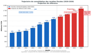 | Recettes fiscales (Mds) | 678 | 720 | 774 | 912 | 1 082 | 1 194 | 1 339 |