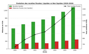 Graphique 8 : Évolution des recettes fiscales liquides et non liquides (2020-2026)